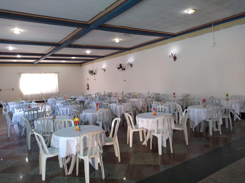 Salão Nobre: Capacidade para até 200 pessoas, acompanha - 40 mesas, 200 cadeiras, 2 freezers, churrasqueira e fogão sem o gás ( opção de trazer ou alugar).